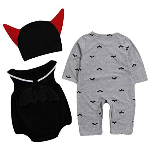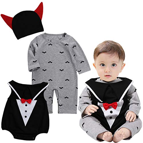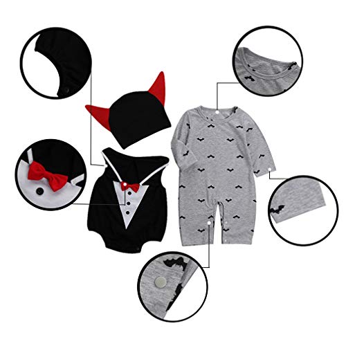 EOZY ベビー ハロウィン コスチューム 吸血鬼 仮装 パーティー ロンパース カバーオール 帽子 3点セット 子供用 可愛い 撮影記念 赤ちゃん 男女兼用 90