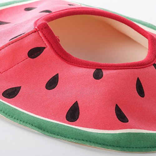 EOZY ベビー よだれかけ 丸い型 5重防水 ビブ お食事用 柔らかい スナップ 360度回転 スタイ 可愛い 赤ちゃん 子供用 保育園 男の子 女の子 スイカ