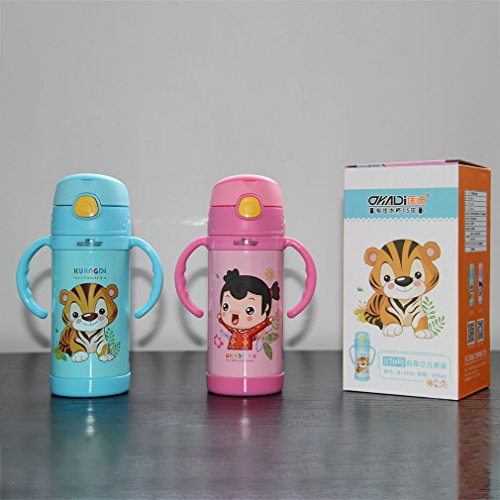 EOZY 水筒 真空断熱ストローボトル 保温 子供 ベビー用 ストローマグ ウォーターボトル 魔法瓶 ステンレス製 コップ かわいい 携帯便利 通学 通園 300ml ブルー