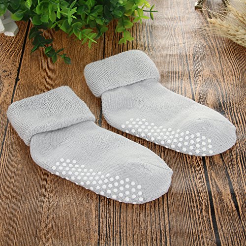 EOZY ベビー ソックス 靴下 パイル編み 赤ちゃん 滑り止め 3足セット 可愛い 純色 乳児ソックス 男女兼用 1~3歳 快適 履き心地よい 出産祝い 誕生日 プレゼント グレー