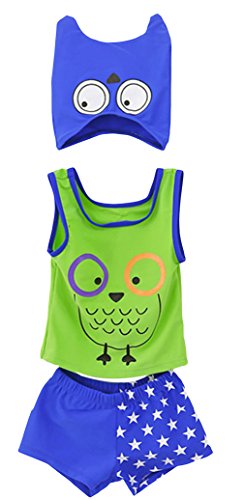 EOZY 男の子 水着 赤ちゃん ベビー 男児 キッズ 水着 キャップ付き アニマルタイプ 3点セット キャラクター スイムウェア 日焼け止め プール 温泉 グリーン 100cm