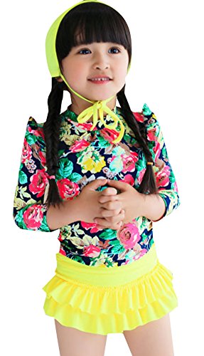 EOZY 女の子 水着 ビキニ セパレート3点セット 長袖Tシャツ 帽子 ベビー 子供用 キッズ スイムウェア 海水浴 ビーチ イエロー 4XL