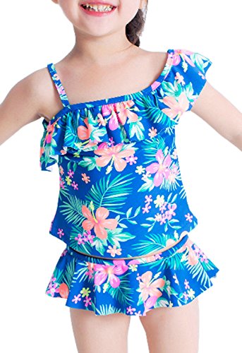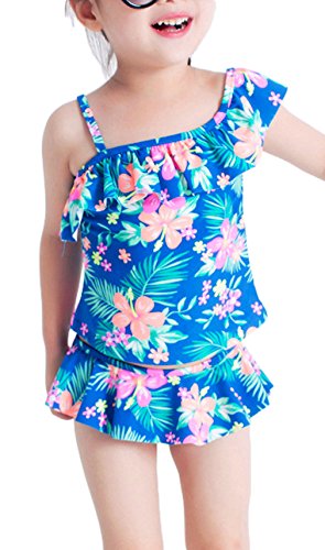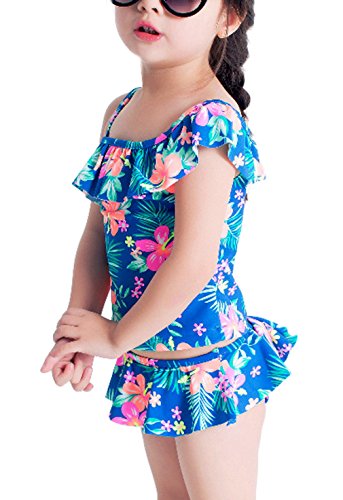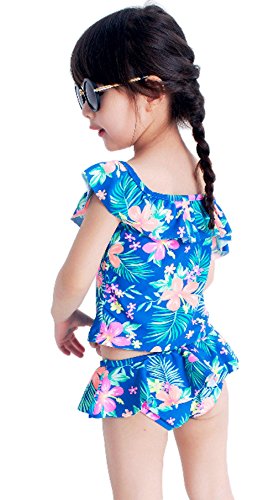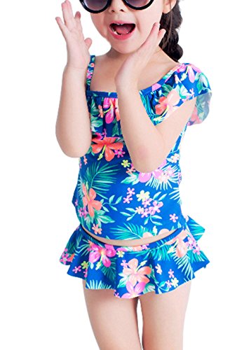 EOZY 女の子 水着 ビキニ 日焼け止め セパレート2点セット 調整可能 ベビー 子供用 キッズ 花柄 スイムウェア 海水浴 ビーチ ブルー 5