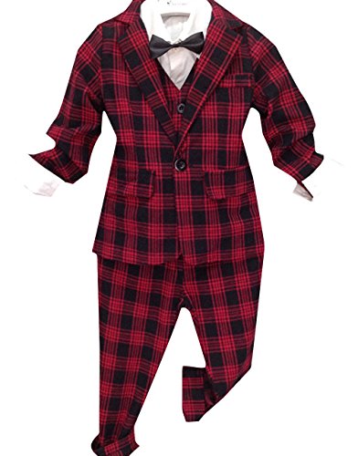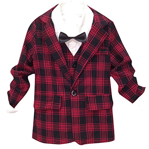 EOZY 男の子 フォーマルスーツ チェック洋服 3点セット ジャケット ベスト ズボン 入学式 卒業式 出産祝い 結婚式 写真撮影 ワインレッド 130
