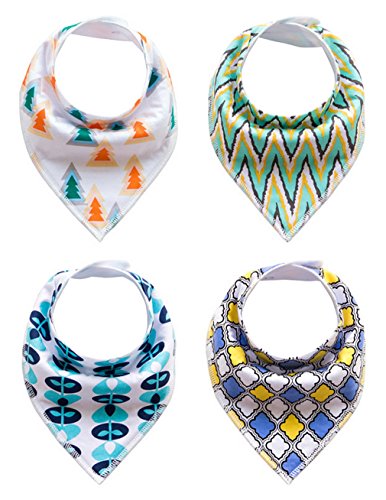 EOZY ベビー スタイ ビブ 柔らかい よだれかけ 2層タイプ 三角 スナップ 調整可能 コットン ギフト バンダナ型 かわいい 出産祝い 4枚セット Fセット