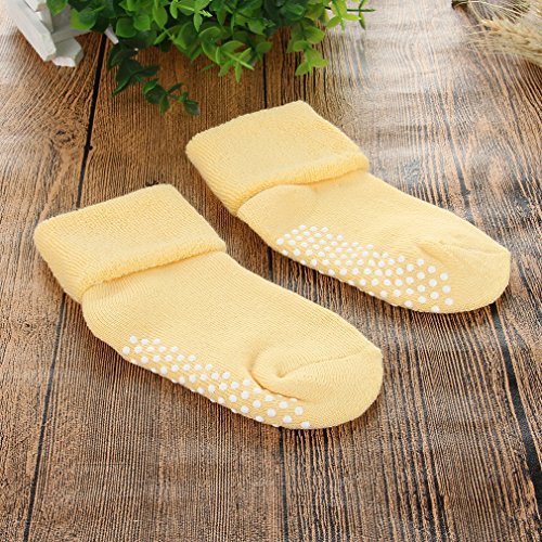 EOZY ベビー ソックス 靴下 パイル編み 赤ちゃん 滑り止め 3足セット 可愛い 純色 乳児ソックス 男女兼用 1~3歳 快適 履き心地よい 出産祝い 誕生日 プレゼント イエロー