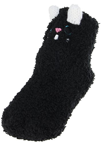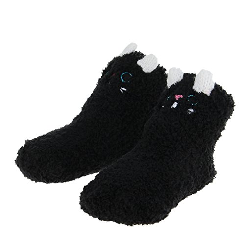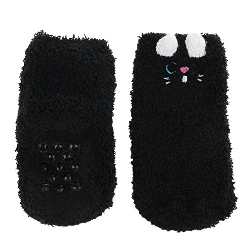EOZY ベビー ソックス 新生児 赤ちゃん用 ルームソックス 滑り止め 靴下 もこもこ アニマル 動物 キッズソックス 女の子 男の子 くつ下 出産祝い Kブラック
