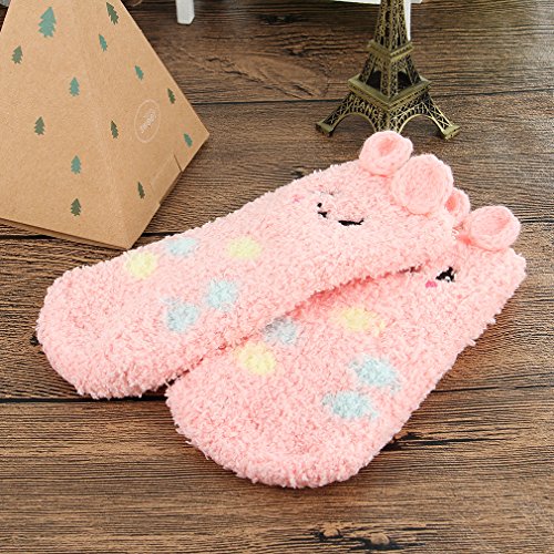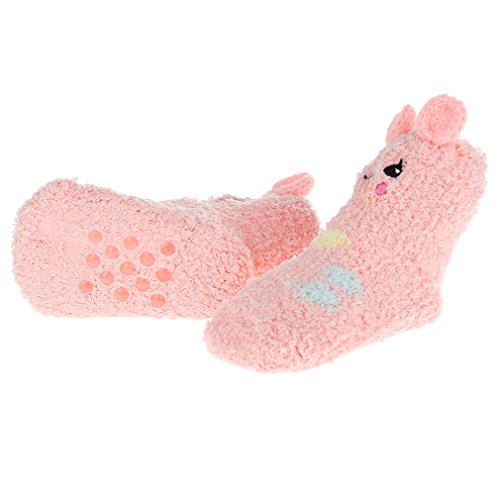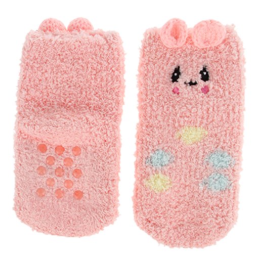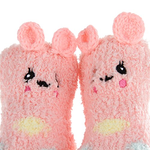 EOZY ベビー ソックス 新生児 赤ちゃん用 ルームソックス 滑り止め 靴下 もこもこ アニマル 動物 キッズソックス 女の子 男の子 くつ下 出産祝い Lピンク