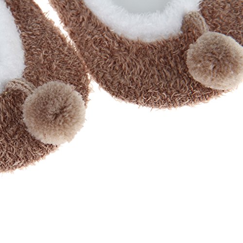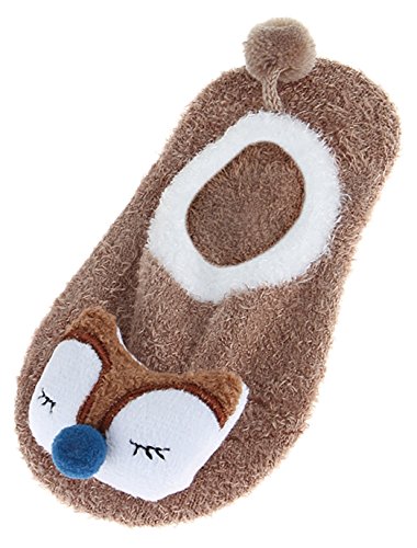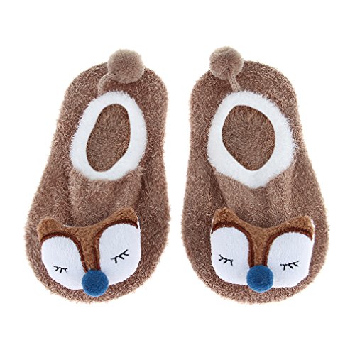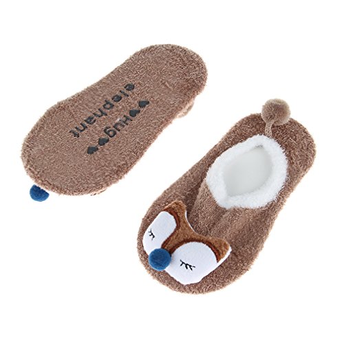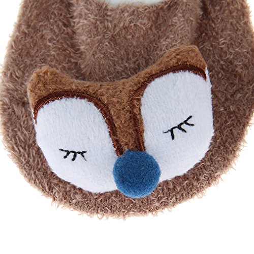 EOZY ベビー 赤ちゃん 靴下 アニマル カワイイ ソックス ショート丈 滑り止め 新生児 幼児 男の子 女の子 キッズ 立体 動物柄 足型 保温 ブラウン 狐 S