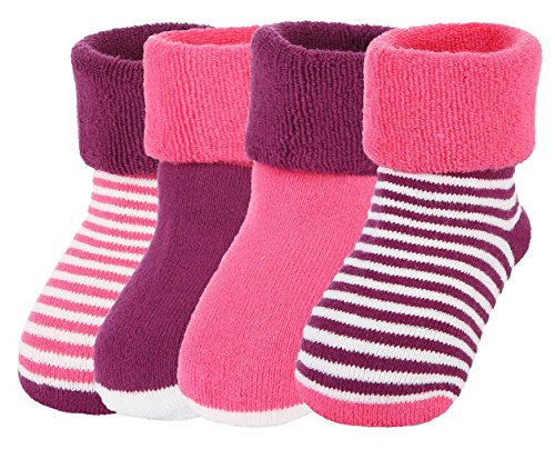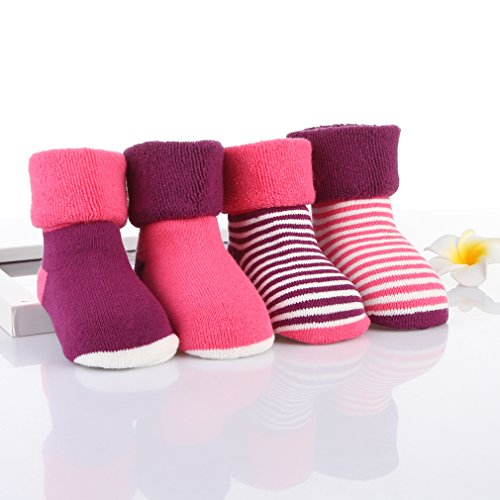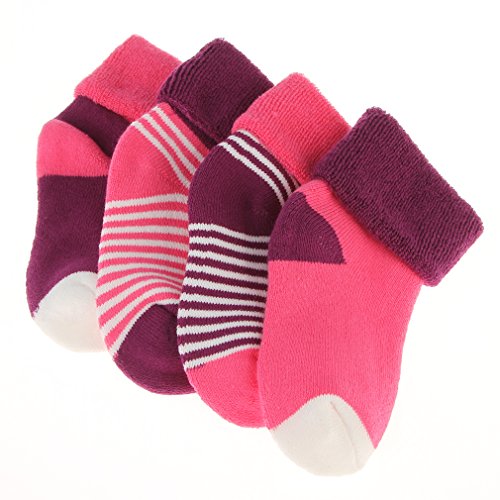 EOZY 靴下 ベビー ソックス 厚手 柔らかい 幼児用 キッズ 子供 ストライプ ジュニア 4足 セット 女の子 ガールズ プレゼント 出産祝い S