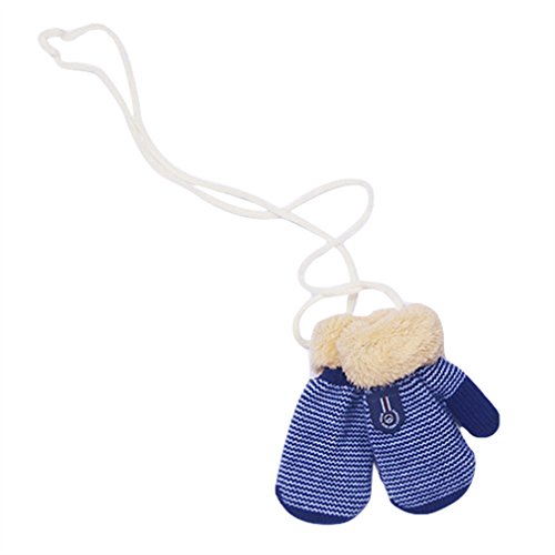 EOZY 子供用 手袋 ミトン ニット グローブ 暖かい 雪遊び お散歩 防寒 秋冬 男の子 女の子 通園 通学 裏起毛 キッズ手袋 ひも付き ストライプ ネイビー