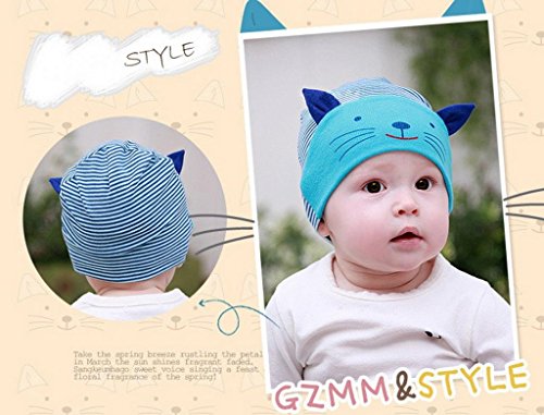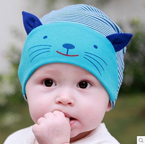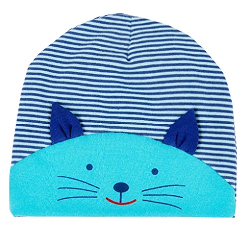 EOZY 新生児 3-18ヶ月ベビー用帽子 赤ちゃん ニット帽 コットン 子供 帽子 ビーニー ハット キッズ ワッチキャップ 可愛い猫柄 春秋保温 ブルー