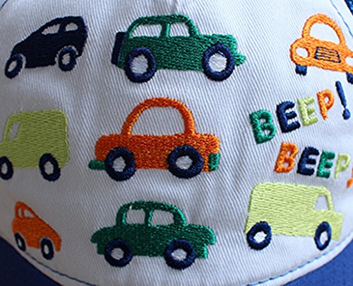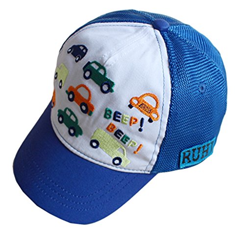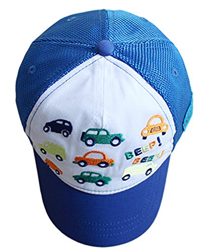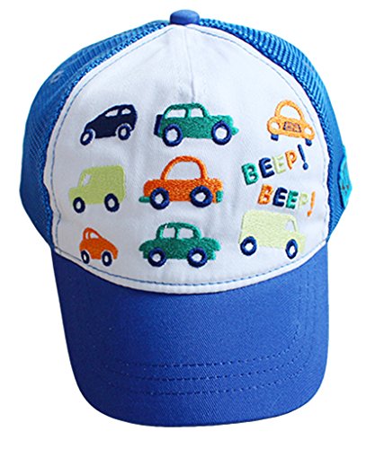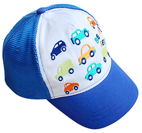 EOZY 可愛い キッズキャップ ベビーハット 野球帽 男の子 男児帽子 子供用 ジュニア 車柄 刺繍 メッシュ カジュアル 紫外線対策 お出かけ ブルー 52cm