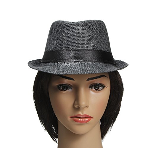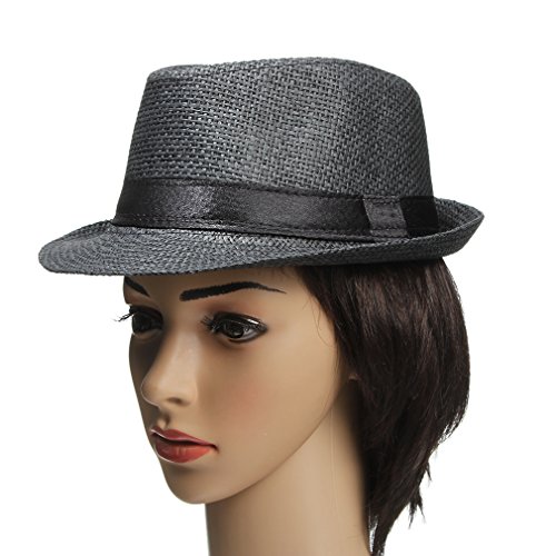 EOZY 子供用 無地 麦ワラ帽子 中折れハット キャップ シンプルでオシャレ 男女兼用 折りたたみ アウトドア 日よけ お出かけ 色選択可 (ブラック)