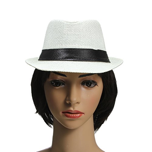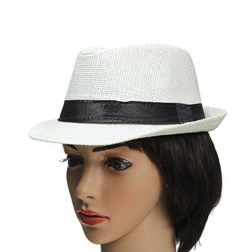EOZY 子供用 無地 麦ワラ帽子 中折れハット キャップ シンプルでオシャレ 男女兼用 折りたたみ アウトドア 日よけ お出かけ 色選択可 (ホワイト2)