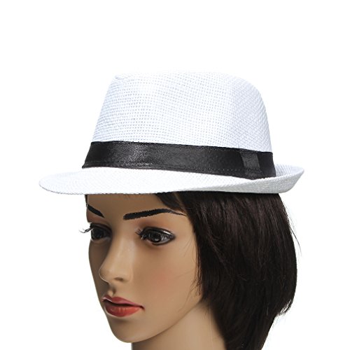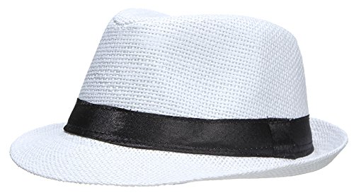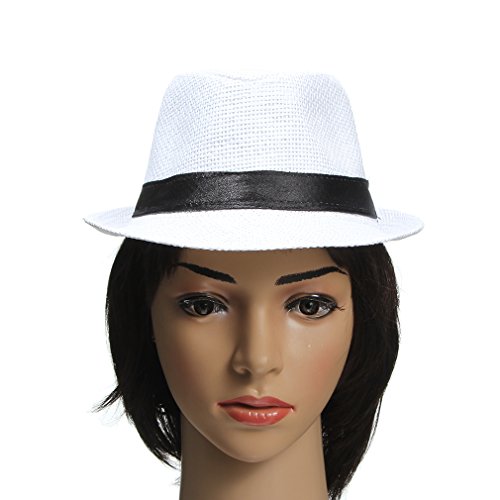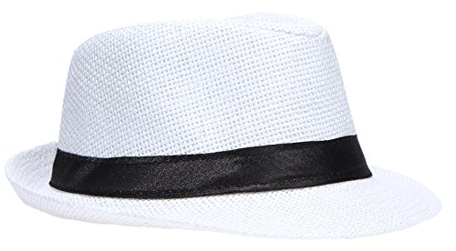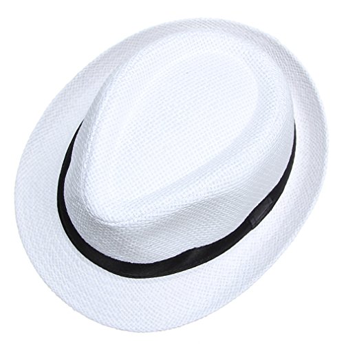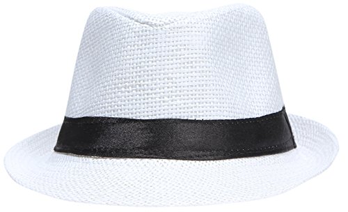 EOZY 子供用 無地 麦ワラ帽子 中折れハット キャップ シンプルでオシャレ 男女兼用 折りたたみ アウトドア 日よけ お出かけ 色選択可 (ホワイト1)