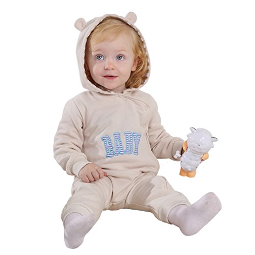 EOZY ベビー ロンパース スウェット 長袖 赤ちゃん用 カバーオール フード付き ジャンプスーツ 女の子 男の子 ベビー服 春秋着 オフホワイト 3-6M