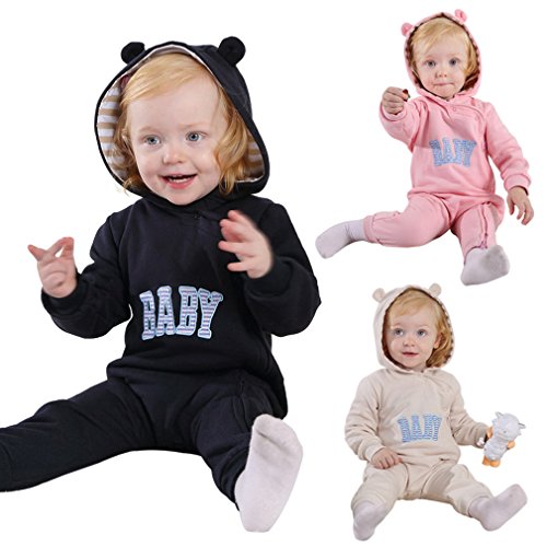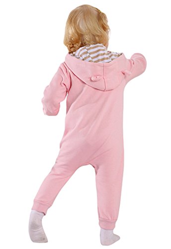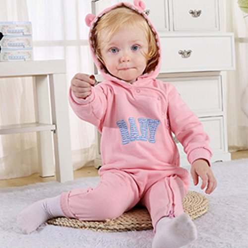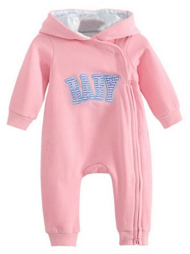 EOZY ベビー ロンパース スウェット 長袖 赤ちゃん用 カバーオール フード付き ジャンプスーツ 女の子 男の子 ベビー服 春秋着 ピンク 6-12M