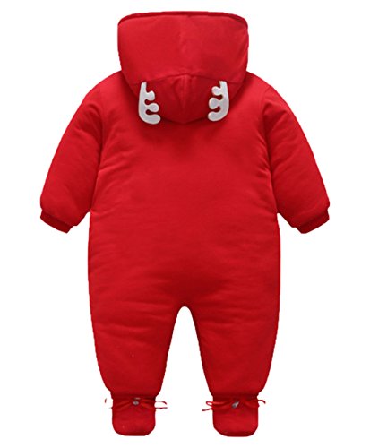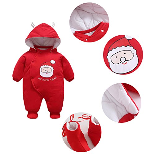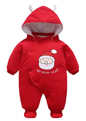 EOZY ベビー ロンパース サンタクロース フード付き 靴付き レッド 可愛い 綿服 柔らかい 着ぐるみ 赤ちゃん 男の子 女の子 防寒 秋冬 80