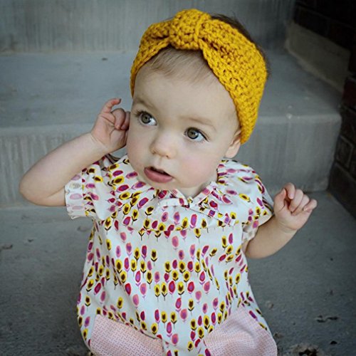 EOZY 可愛い 赤ちゃん ベビー ヘアバンド ニット 秋冬用 キッズ かみかざり ヘアアクセサリ 出産祝い 記念撮影 プレゼント カラフル イエロー