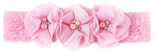 EOZY ベビー用ヘアバンド お花 レース パール付き 赤ちゃん キッズ かみかざり ヘアアクセサリ 出産祝い 記念撮影 プレゼント カラフル C