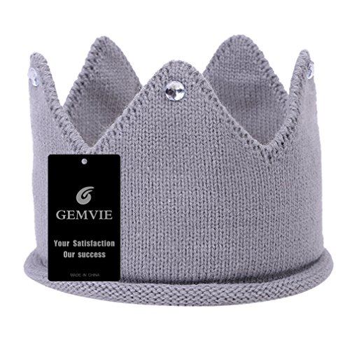 GEMVIE 可愛い 赤ちゃん ベビー ヘアバンド 帽子 子供 王冠 色鮮やか ニット キッズ かみかざり ヘアアクセサリ 誕生日 記念撮影 プレゼント グレー