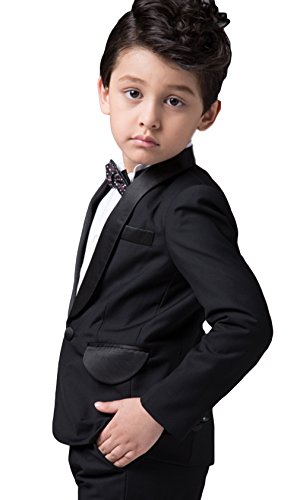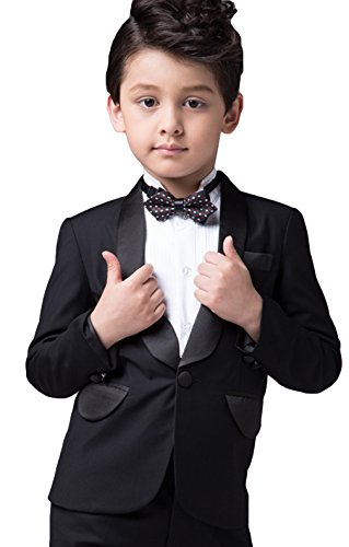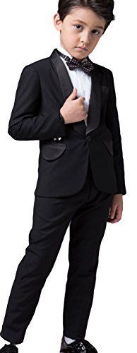 EOZY 子供 スーツ 男の子 ボーイズ フォーマルスーツ キッズ ジャケット ズボン ワイシャツ 蝶ネクタイ 4点セット 入学式 卒業式 ブラック 150