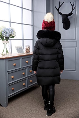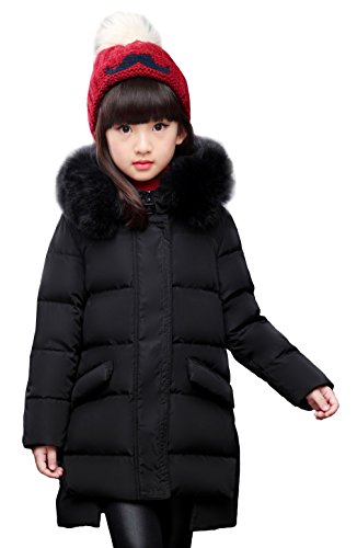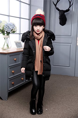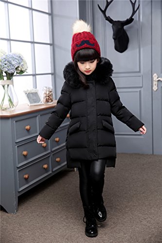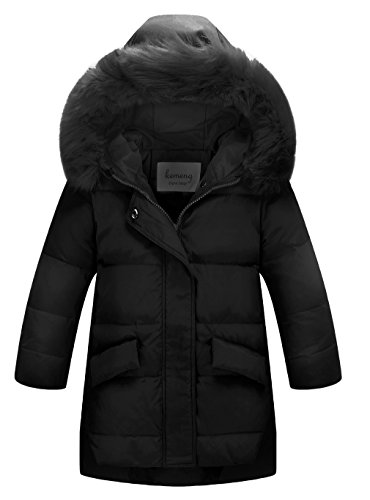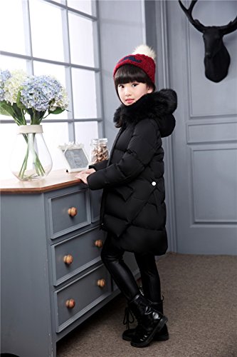 EOZY 子供服 ダウンジャケット女の子 フード付き 秋冬 ダウンコート アウター 棉服 防寒 保温 ガールズ 通園 通学 キッズ ロング 120 ブラック