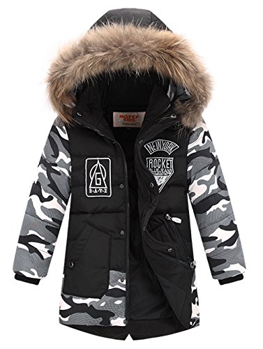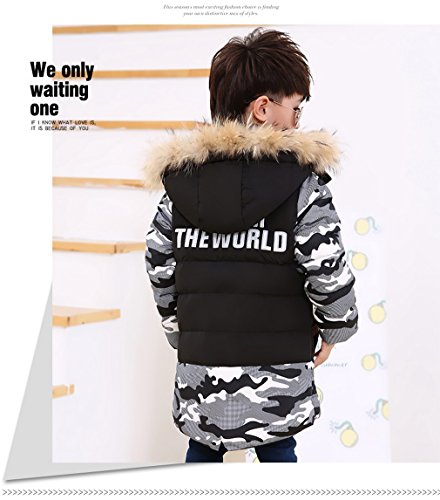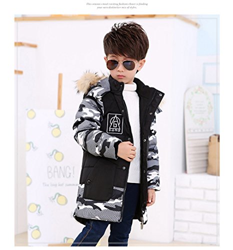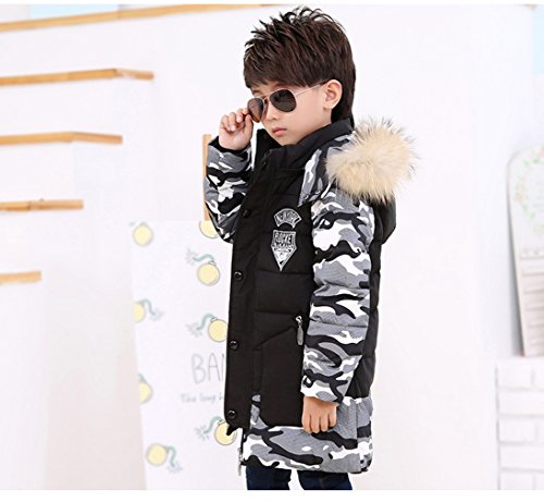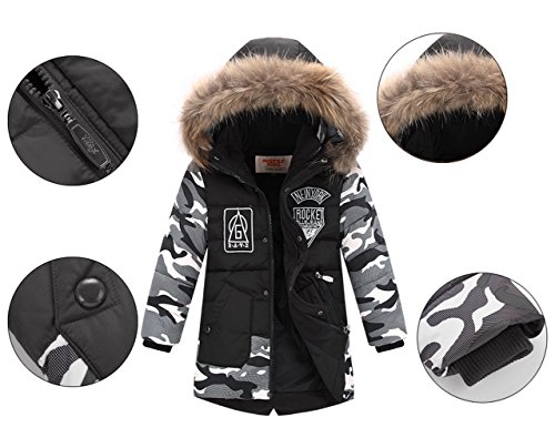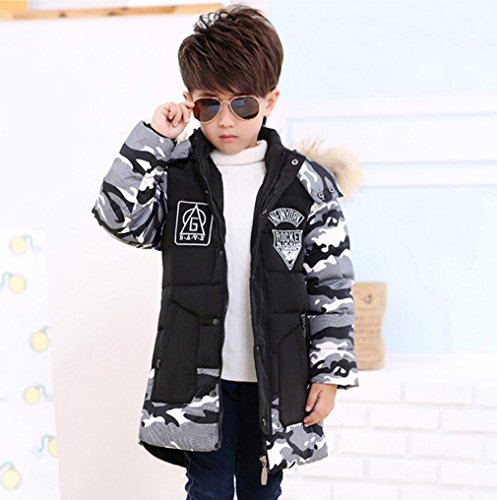 EOZY キッズ服 ダウンジャケット ダウンコート ボーイズ 迷彩 フード付き カジュアル ジッパー 男の子 子供 防寒 保温 アウター 通学 110 ブラック