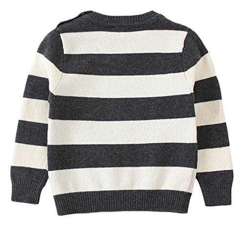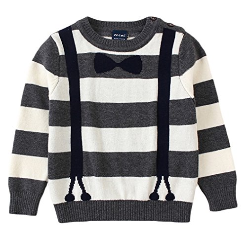 EOZY キッズ セーター ニット 男の子 子供服 ストライプ クルーネック リボンプリント 可愛い 長袖 トップス 秋冬 ボーイズ 柔らかい 120 グレー