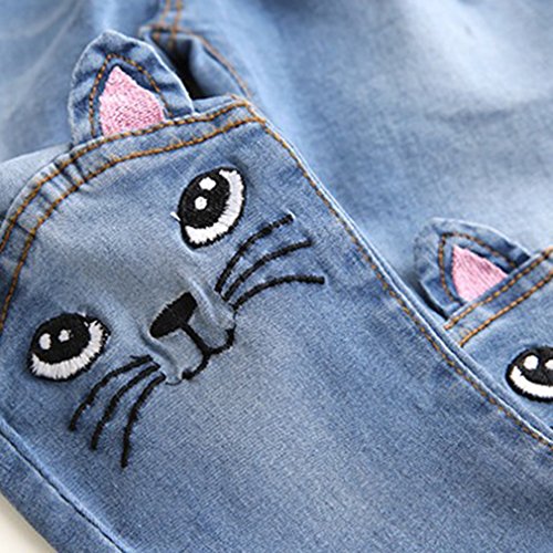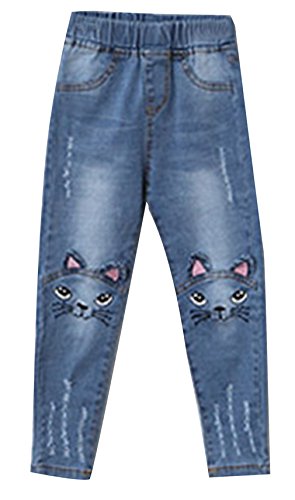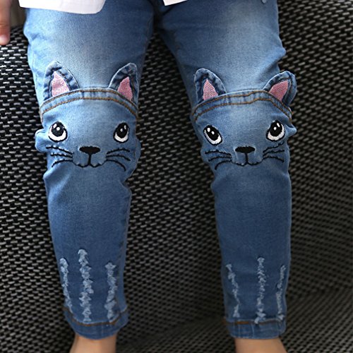 EOZY キッズ デニム パンツ ロングパンツ ジーパン 女の子 長ズボン 猫柄 おしゃれ 子供用 ジーンズ スキニー ボトムス カジュアル 120
