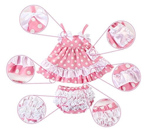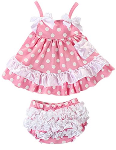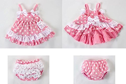 EOZY 可愛い ワンピース ベビー服 赤ちゃんドレス 2点セット ベビーショートパンツ スイムウェア 袖なしワンピ 夏着 蝶結び フリル 子供用 ピンク水玉プリント 80