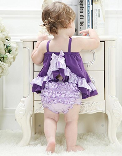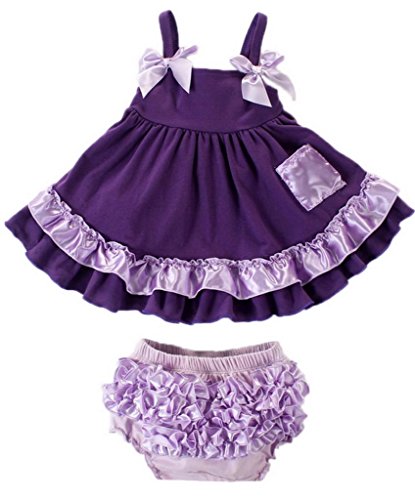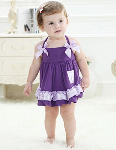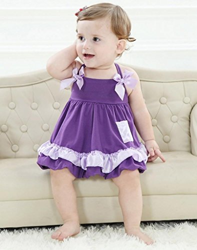 EOZY 可愛い ワンピース ベビー服 赤ちゃんドレス 2点セット ベビーショートパンツ スイムウェア 袖なしワンピ 夏着 蝶結び フリル 子供用 パープル無地 110