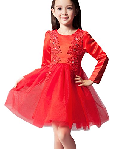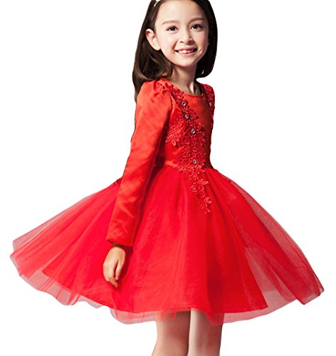 EOZY 子供 プリンセス ドレス 女の子 上質 キッズドレス ワンピース 長袖 ガールズ 子ども フォーマル ワンピ 結婚式 ピアノ 発表会 レッド 130