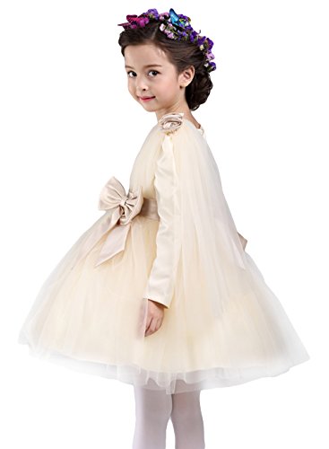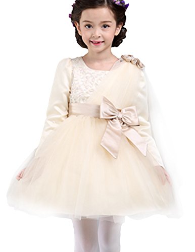 EOZY 子供服 女の子 ワンピース 長袖 ドレス 蝶結び チュールスカート ガールズ 女児 フォーマル ワンピ 子ども 入学式 結婚式 ピアノ 発表会 シャンパン色 140