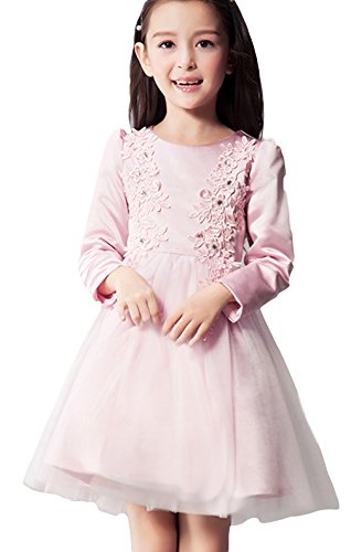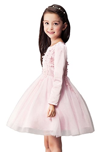 EOZY 子供 プリンセス ドレス 女の子 上質 キッズドレス ワンピース 長袖 ガールズ 子ども フォーマル ワンピ 結婚式 ピアノ 発表会 ピンク 130