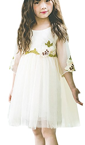 EOZY チュール ワンピース 子供 フォーマル ドレス キッズ 女の子 ガールズ ジュニア 花嫁介添人 結婚式 ピアノ 発表会 演奏会 ホワイト 110