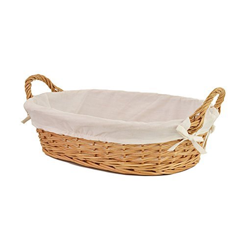 Made of natural wicker,steamed wicker,full wicker,durable;Oval shape with liner and two handles at both sides;Perfect for nursery room,washing room and bedroom;Ideal for towel,baby paper diapers,underwear,socks and so on;Dimensions:Length 17.3 x width 12.2 x height 4.3(height not include handle)