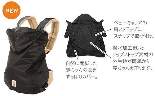 冷たい雨や風から赤ちゃんをしっかりガードする、エルゴベビー・ベビーキャリア専用カバーです。お出かけ先で雨に降られても安心です。エルゴベビー・ベビーキャリアに取り付けが可能。