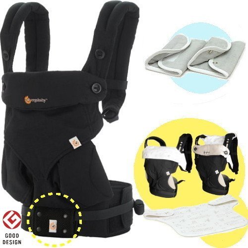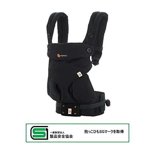 エルゴベビー (360スリー・シックスティ ピュアブラック/ベビーウエストベルト付)【日本正規品2年間保証-SG認定】(よだれパッド+前抱き・対面抱き両用リバーシブルスタイ付)