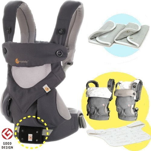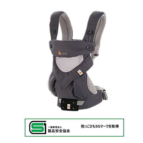 エルゴベビー (360スリー・シックスティ クールエア・カーボングレー/ベビーウエストベルト付)【日本正規品2年間保証-SG認定】(よだれパッド+前抱き・対面抱き両用リバーシブルスタイ付)