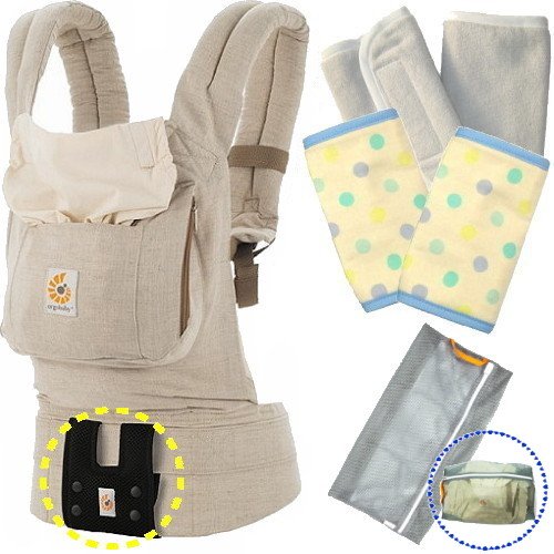 ベビーウエストベルト付エルゴベビー 抱っこ紐 ナチュラル リネン 【日本正規品2年間保証付】本体+パッド2個付 ERGO Baby