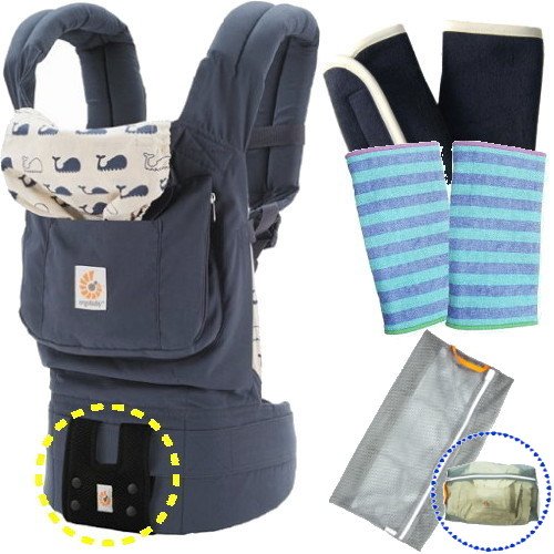 ベビーウエストベルト付エルゴベビー 抱っこ紐 マリーン 【日本正規品2年間保証付】本体+パッド2個付 ERGO Baby