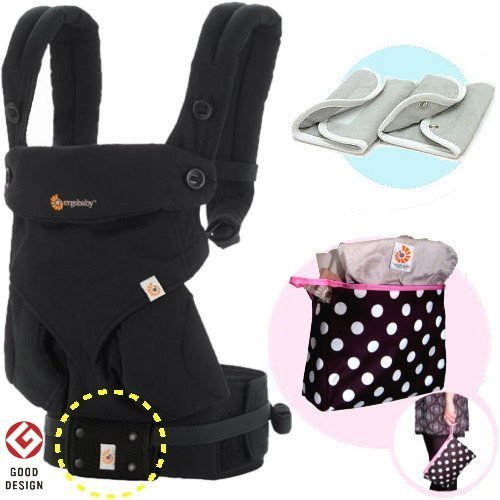 Ergobaby 【日本正規品保証-SG認定付】【日本限定ベビーウエストベルト付】 エルゴベビー ベビーキャリア 360スリーシックスティ/ピュアブラック (よだれパッド+エルゴ収納用ポーチ付)