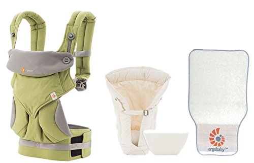 エルゴ360ベビーキャリア グリーン/インファントインサートIIオーガニックナチュラル【新生児対面抱き用】/今治タオルパッド<3点セット>STEGR0041