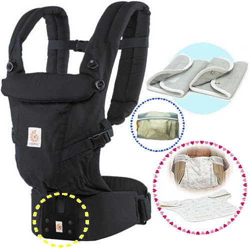 ベビーウエストベルト付エルゴベビー・抱っこひも【日本正規品2年間保証-SG認定付】 ADAPTアダプトブラック (よだれパッド+ママスタイ+収納ポーチ付)