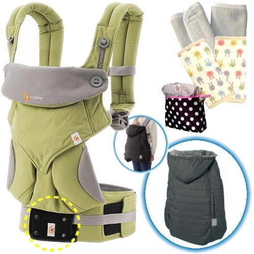 エルゴベビー防寒セット 360スリーシックスティ/グリーン 【正規品2年間保証-SG認定】 防寒ケープ+よだれパッド+収納ポーチ付