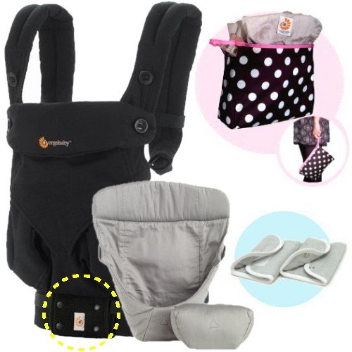 エルゴベビー 抱っこ紐(ベルト付) 360スリーシックスティ/ピュアブラック・インサート3III 【正規代理店2年間保証-SG認定付】 よだれパッド+収納ポーチ付