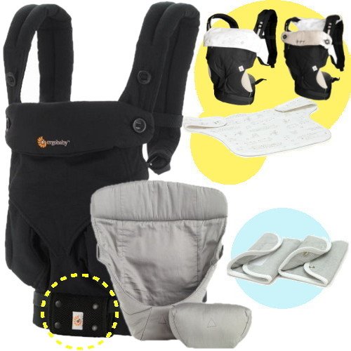 エルゴベビー 抱っこ紐(ベルト付) 360スリーシックスティ/ピュアブラック・インサート3III 【正規代理店2年間保証-SG認定付】 よだれパッド+前抱き・対面抱き両用リバーシブルスタイ付