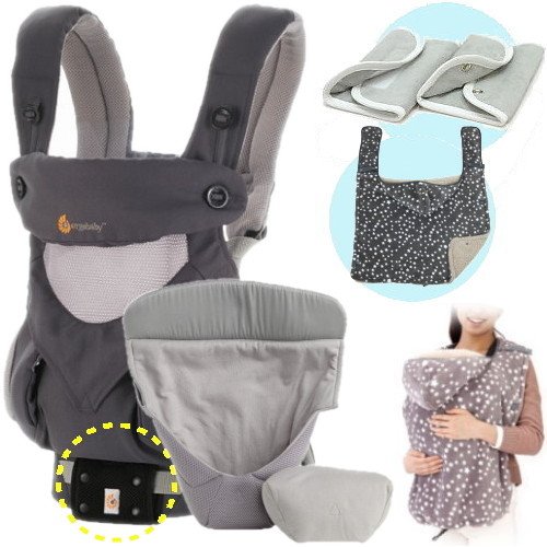 エルゴベビー 抱っこ紐 (ベルト付) 360スリーシックスティ/カーボングレー・クールエアインサート3III+防寒セット 【正規品2年間保証-SG認定】 +防寒ケープ&よだれパッド